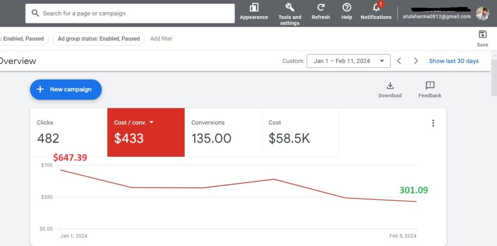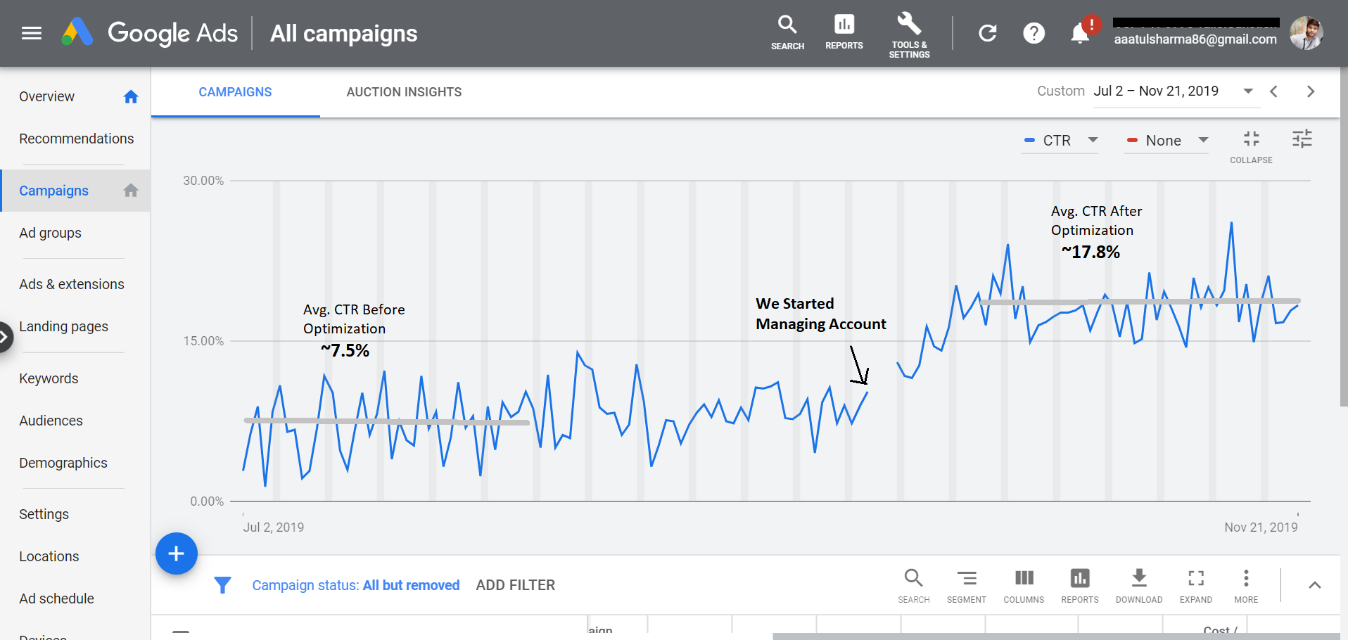 The client was running a PPC campaign to generate online leads for their business. But, the account cost per Lead (CPA, CPL) was way high, hence the client was burning all their profits in running the ads. Her main concern was to reduce the budget spend without compromising the number of leads.