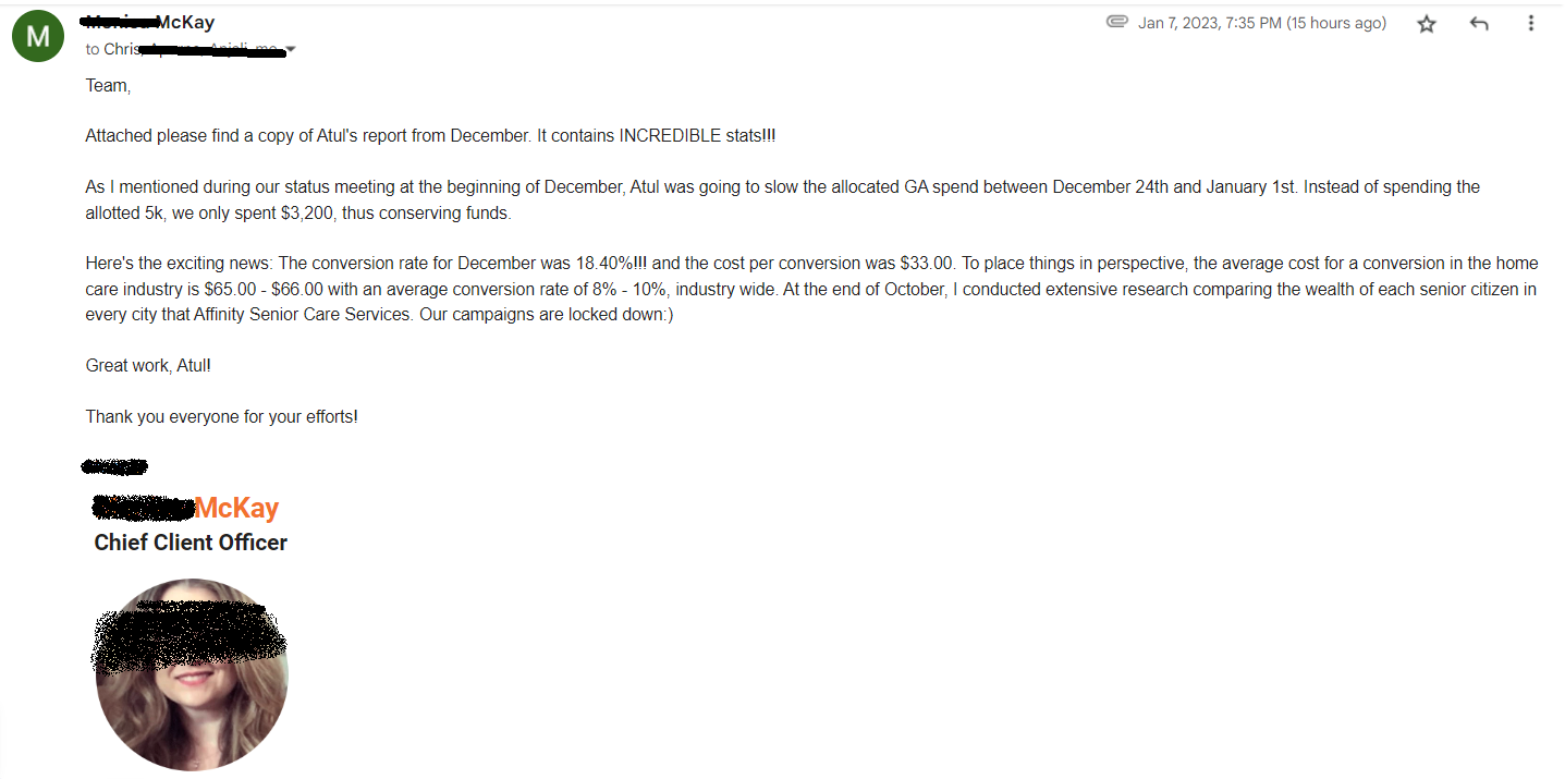 But, the problem was that the account cost per lead and the cost to sign cases were higher than the expectation hence the client was burning 1000s of dollars of their marketing budget on running the ads without expected outcomes.
