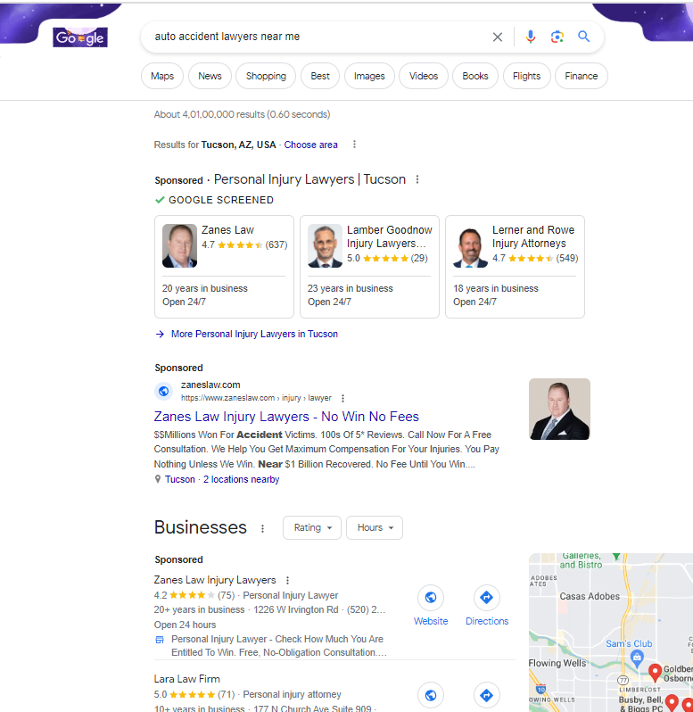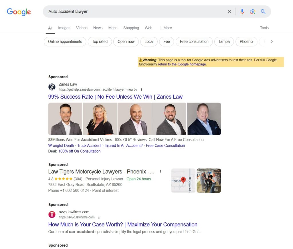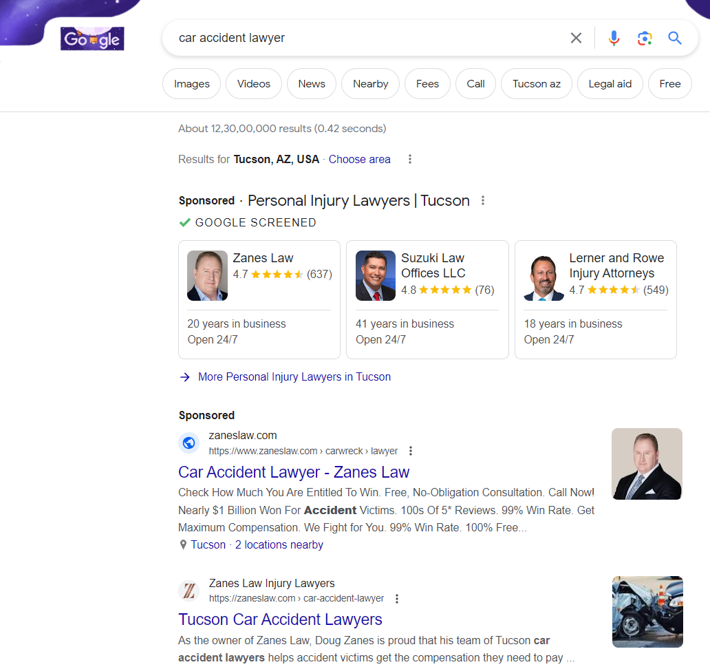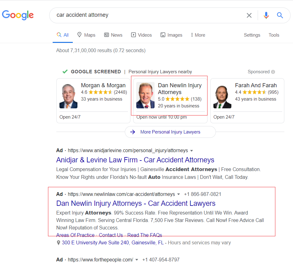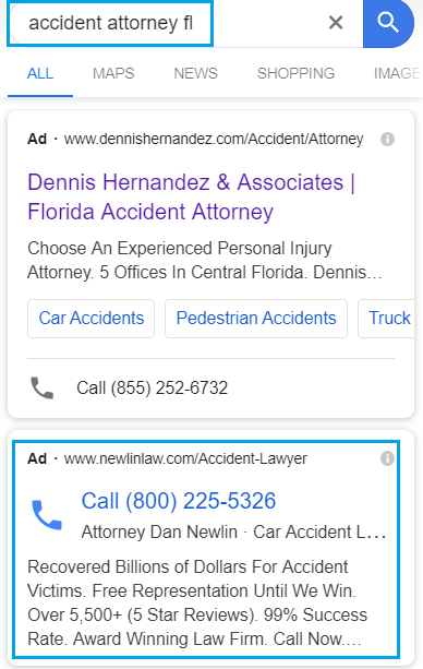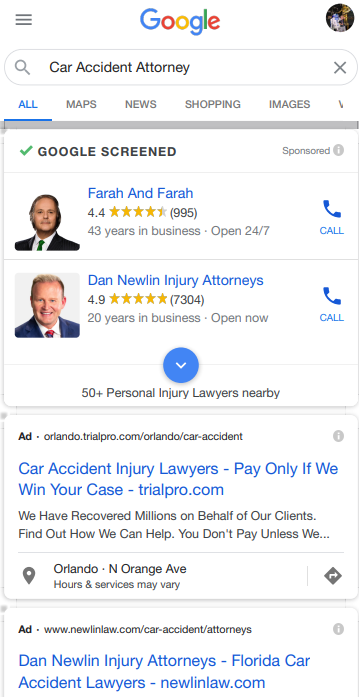 The client was already running a PPC campaign to reach the people needing an accident lawyer.