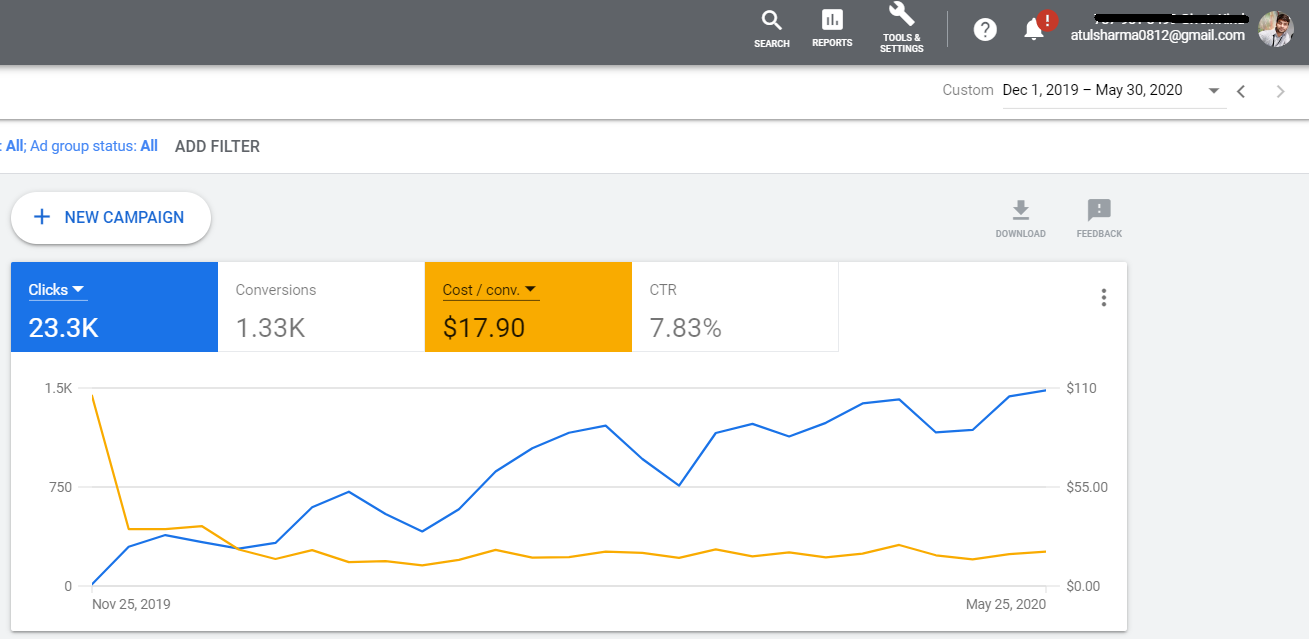 The Click Through Rate of the account was also low, at just around 2%, compared to market standards, and needed immediate attention.